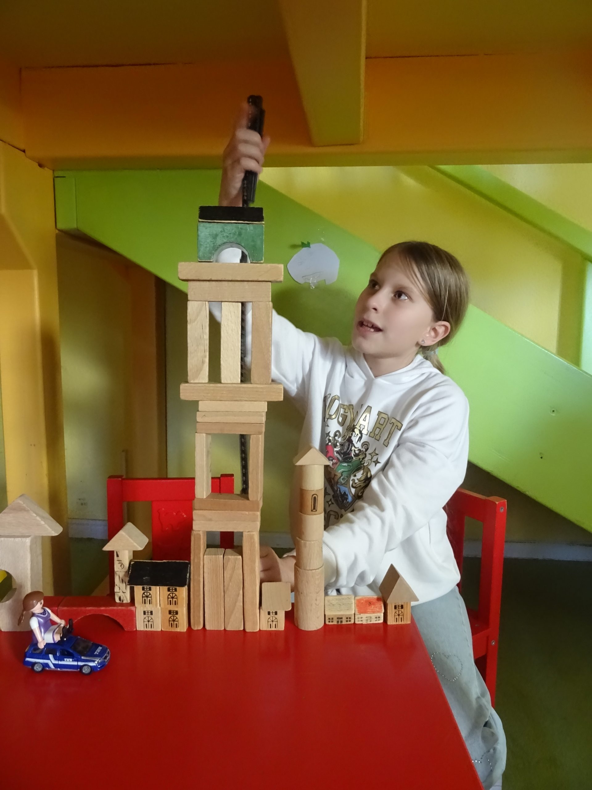Im November wurde es bei uns richtig kreativ! Die Kinder tauchten begeistert in die Welt der Konstruktionen ein und bauten fantasievolle Häuser und hohe Türme aus ganz unterschiedlichen Materialien. Lego, Papier, Holzbausteine – alles war erlaubt! Mit viel Spaß, Ideenreichtum und Experimentierfreude ließen die Kinder ihrer Kreativität freien Lauf und erschufen beeindruckende Bauwerke.
